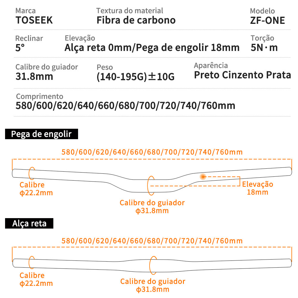 Largura do guiador: 580/600/620/640/660/680/700/720/740/760MM