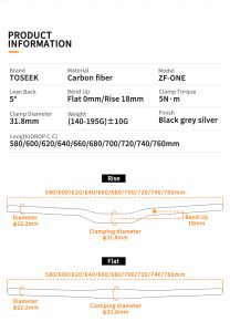 Handlebar Width 580/600/620/640/660/680/700/720/740/760MM Stem Clamp Diameter 31.8MM